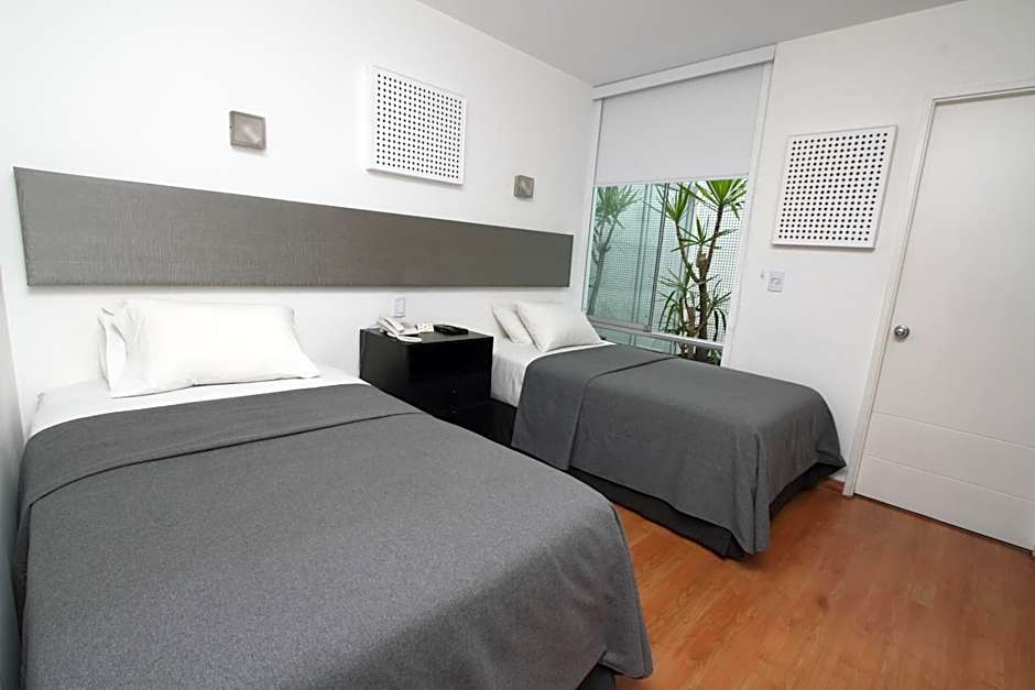 Features plenty of light and is styled with minimalistic-inspired decor. It is equipped with 2 single beds. Room may be located on the first or second floor.